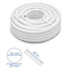 Spiralna cijev za kondenzat klimatizacijskih uređaja s glatkom unutrašnjošću, otporna na pritisak. Primarno za izravnu ugradnju na priključak kondenzata unutarnjih klimatizacijskih jedinica ili velikih pumpi za kondenzat. Vrlo pogodna za skrivenu ugradnju. Materijal je meki PVC. To osigurava jednostavnu ugradnju. Cijev je glatka iznutra kako kondenzat ne bi mogao “stajati” i razvijati mirise. Ova cijev za odvodnjavanje kondenzata od 16 mm namijenjena je za uporabu s zidnim klimatizacijskim jedinicama. Cijev kondenzata izravno se priključuje na priključak kondenzata unutarnje jedinice, a zatim se može odvesti do odvodnog mjesta gravitacijskom rutom. Ova cijev odgovara svim unutarnjim jedinicama proizvođača.